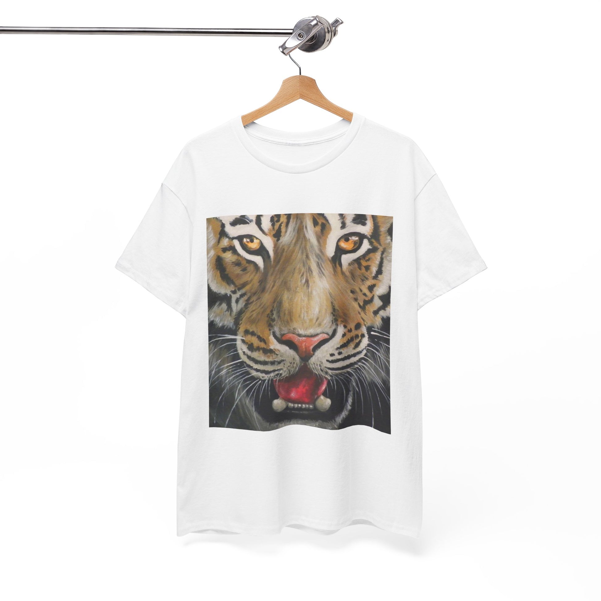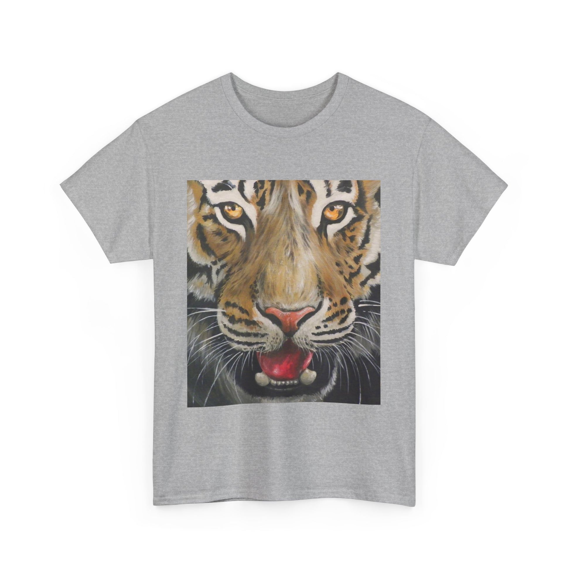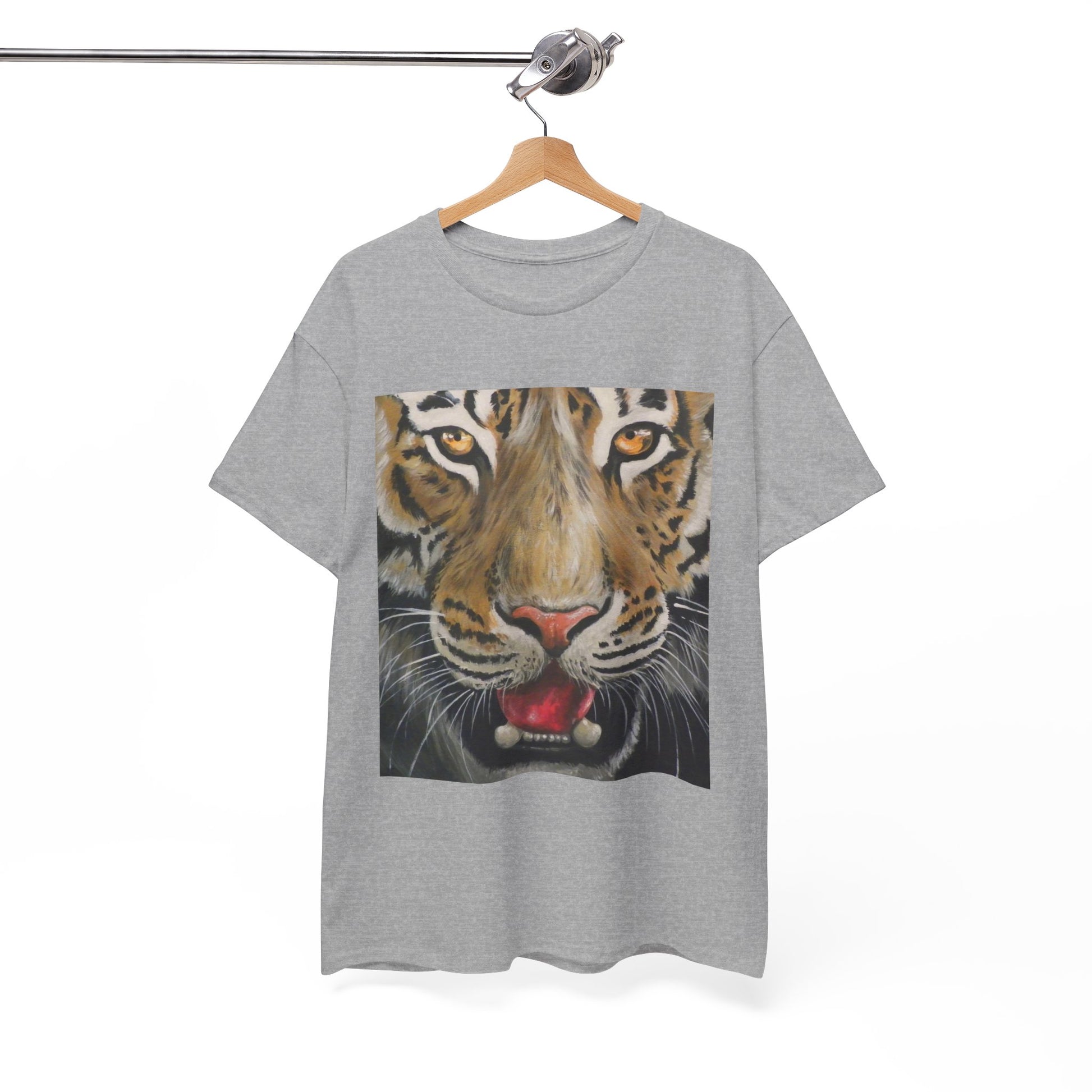Introducing the Fierce Tiger Unisex Heavy Cottom Tee - Wildlife Shirt. This tee showcases a bold tiger design from original artwork, perfect for those who admire wildlife and unique art. Crafted from soft, high-quality cotton, it offers comfort and durability for everyday wear. Make a statement with this powerful and captivating tee, bringing the spirit of the wild to your wardrobe.