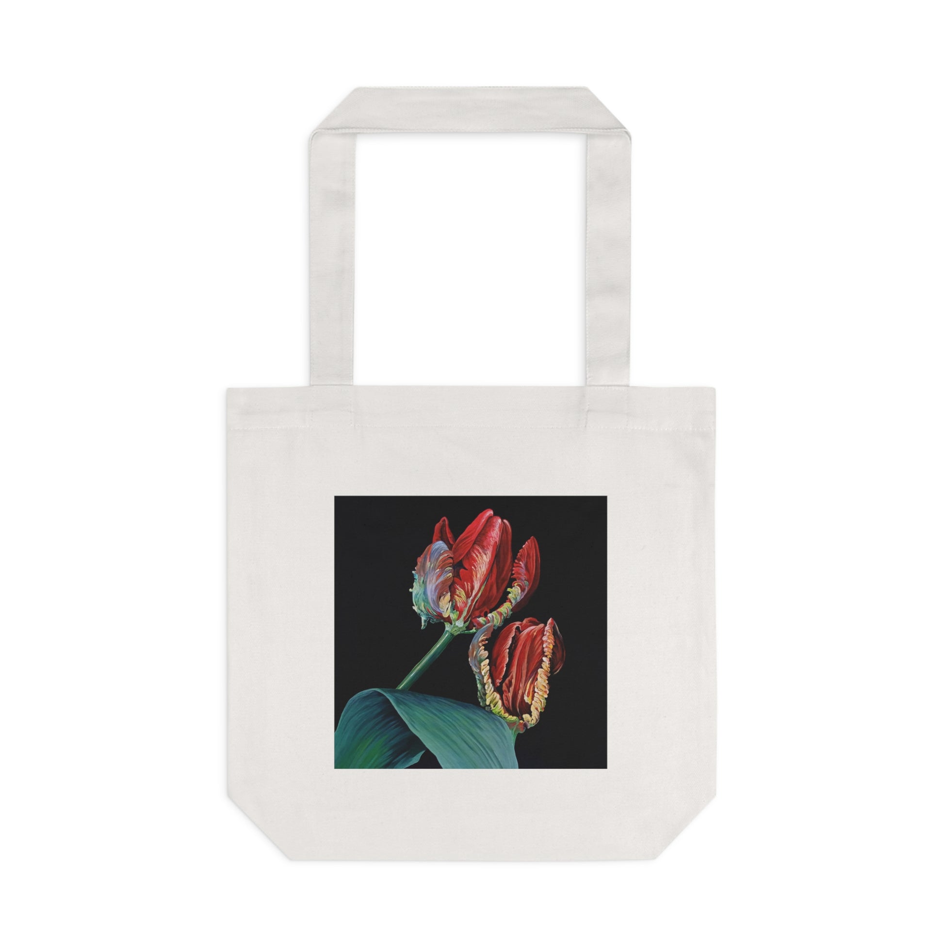 This cotton canvas tote features a floral artwork print on durable, medium-heavy fabric. Made from 100% cotton with reinforced shoulder straps, it offers a reliable and practical solution for daily use. The 42cm x 42cm size provides ample space for everyday essentials while maintaining a simple, versatile look.